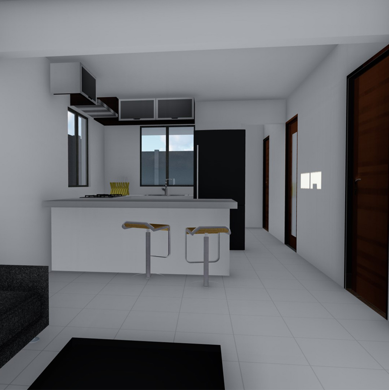 Este proyecto se desarrolla en un área de 70 m2, en donde se utiliza cada espacio al máximo, teniendo un área social donde su ubica sala y cocina/comedor, y un área privada donde se ubican 3 cuartos, 2 baños y un pequeño patio de luz. Siendo este un proyecto en donde la luz y la utilización del espacio son consideraciones de vital importancia.